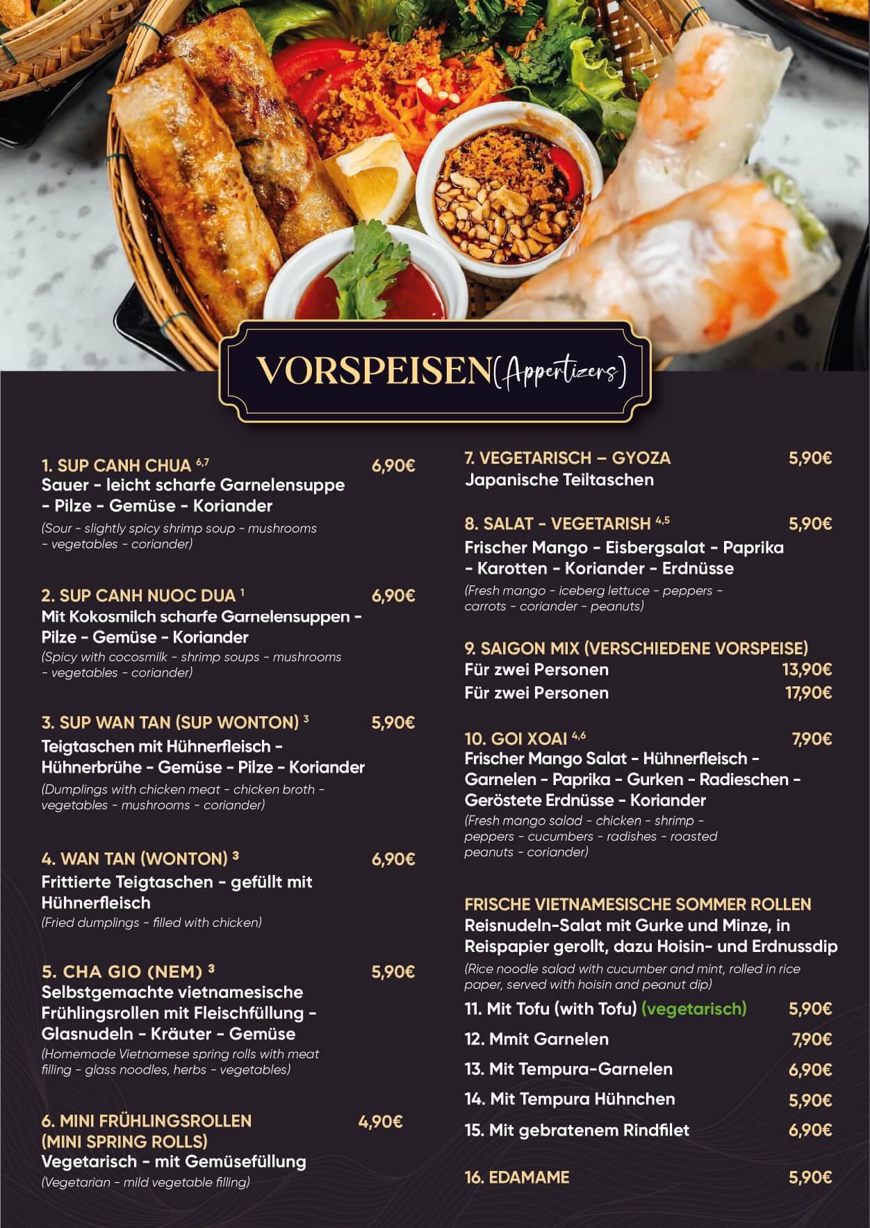 Mit mehr als 10 Jahren Erfahrung in der vietnamesischen Kochkunst verfolgen wir das Ziel, unsere Gäste zu inspirieren und das Wohlbefinden hoch zu standardisieren: Köstlichkeit, Feinheit und Sorgfalt.